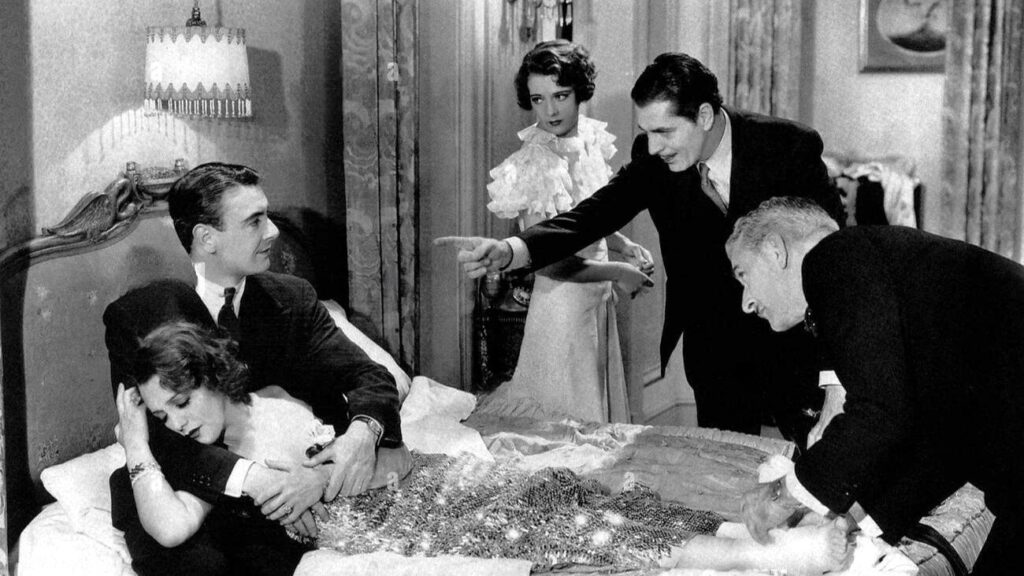 The secondary protagonist is director Julian Marsh (Warner Baxter), an anxious grump known for getting the job done. But he treats Pretty Lady like it’s going to kill him — because, according to a doctor in the film’s opening, it literally might. Early on, he has this great undercurrent of resentment about authorship: he does more bleeding for the production than anyone else, and it might cost him his life, but the stars are the ones who get the love and headlines. That idea sits in the background like a low hum while the movie keeps busy with light romantic drama, rehearsal chaos, and the backstage pleasure of watching a project teeter on the edge of collapse for an hour-plus straight.