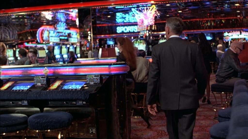 Sydney offers to help John get back on his feet and into stability; and yet he ushers him into a casino (an irony that keeps us skeptical of Sydney’s grace and wisdom). The casino regular Sydney (suggested, but not explicitly confirmed, to be a degenerate gambling addict) introduces to John the ways of the neon cathedral: little routines and “hacks” that don’t steal money, but make John seem like a high roller. Hard Eight is not a long film, but it has patience building a fluorescent world where time doesn’t exist and everyone is both anonymous and intensely observed. Sydney’s composure is hypnotic: he’s disciplined, measured, and paternal to John, his inner motivations opaque. But the movie subtly hints Sydney has averted his eyes from some dark inner truth we’re just waiting to emerge.