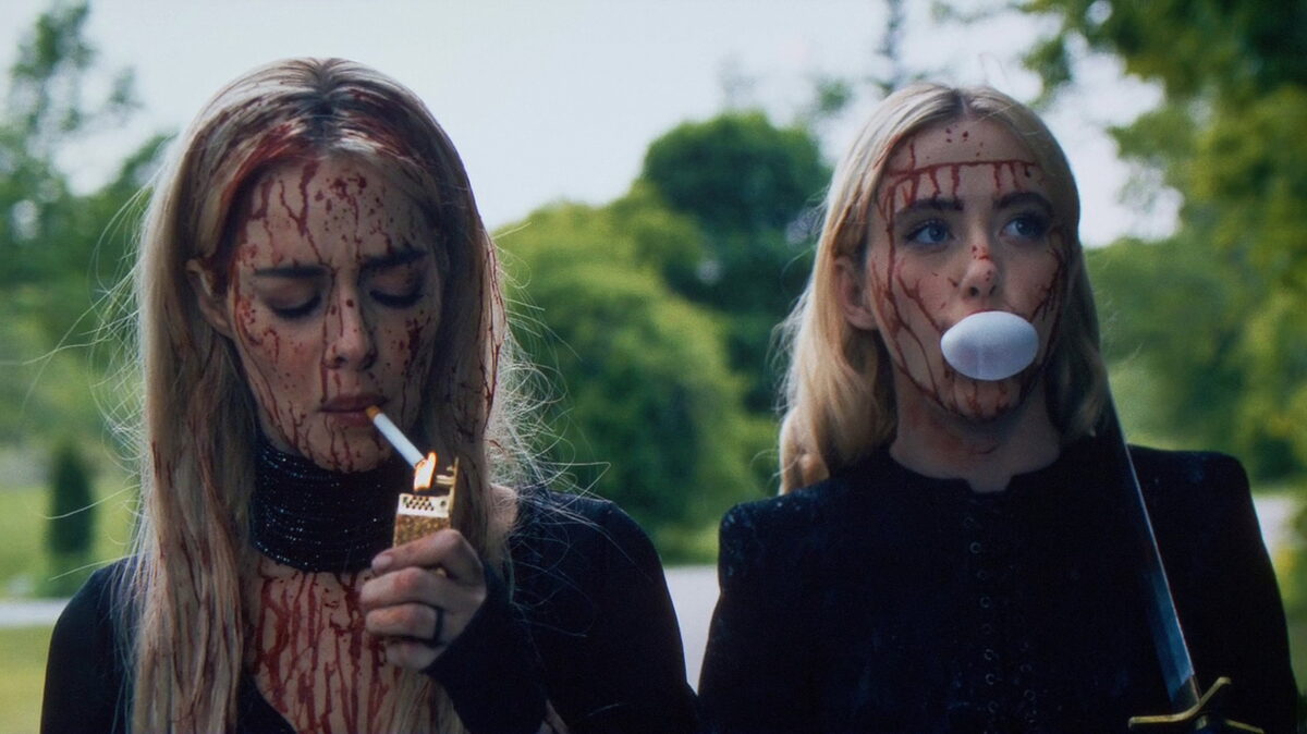 A blood-spattered Grace (Weaving) has survived the ordeal of her husband’s family trying to murder her in a game of hide and seek and then exploding like popped blood balloons when an ancient curse came true. She’s rushed to the hospital where her estranged sister Faith (Kathryn Newton) meets her. Moments later, they’re both whisked into another single-night game of murderous hide-and-seek, this time with a new lineup of idiotic billionaires hunting them down.