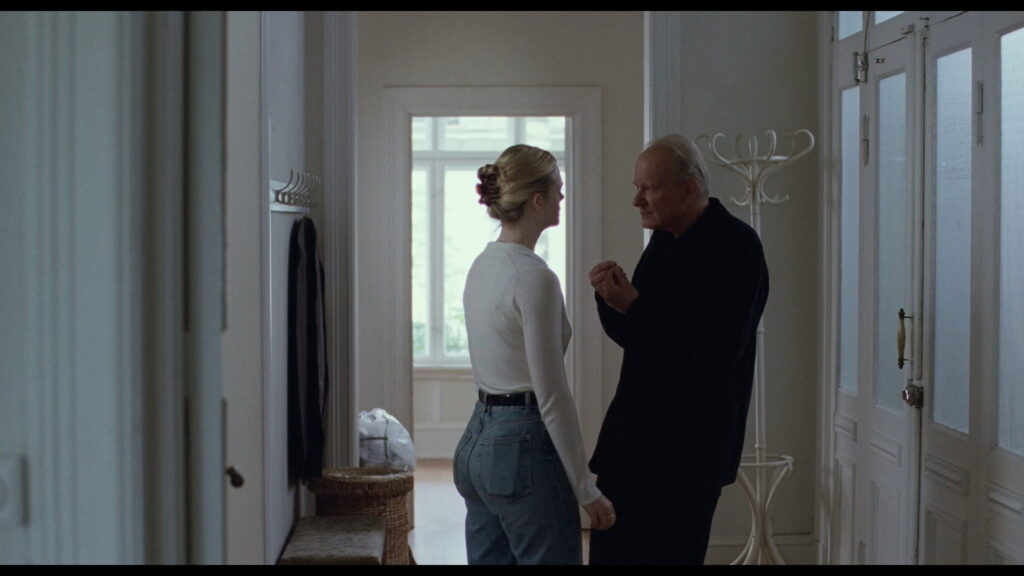 The most purely idea-driven character of the bunch is Rachel Kemp (Elle Fanning), an American actor who enters the orbit as a foil for Nora, filling in Nora’s role in Gustav’s film. Fanning is doing fine work with what she’s given, but the character is pretty purely a a narrative instrument rather than a fully realized person. When the movie shifts toward industry commentary around her, that’s also around the point the runtime starts to feel a little baggy. At 135 minutes, the film earns a lot of its space, but it also has stretches where I could feel the gears turning. The movie suggests some strange sexual tension between Rachel and Gustav in their early scenes, but backs off that rather than diving into uncomfortable, Freudian territory once it becomes clear that Rachel is standing in for Nora.