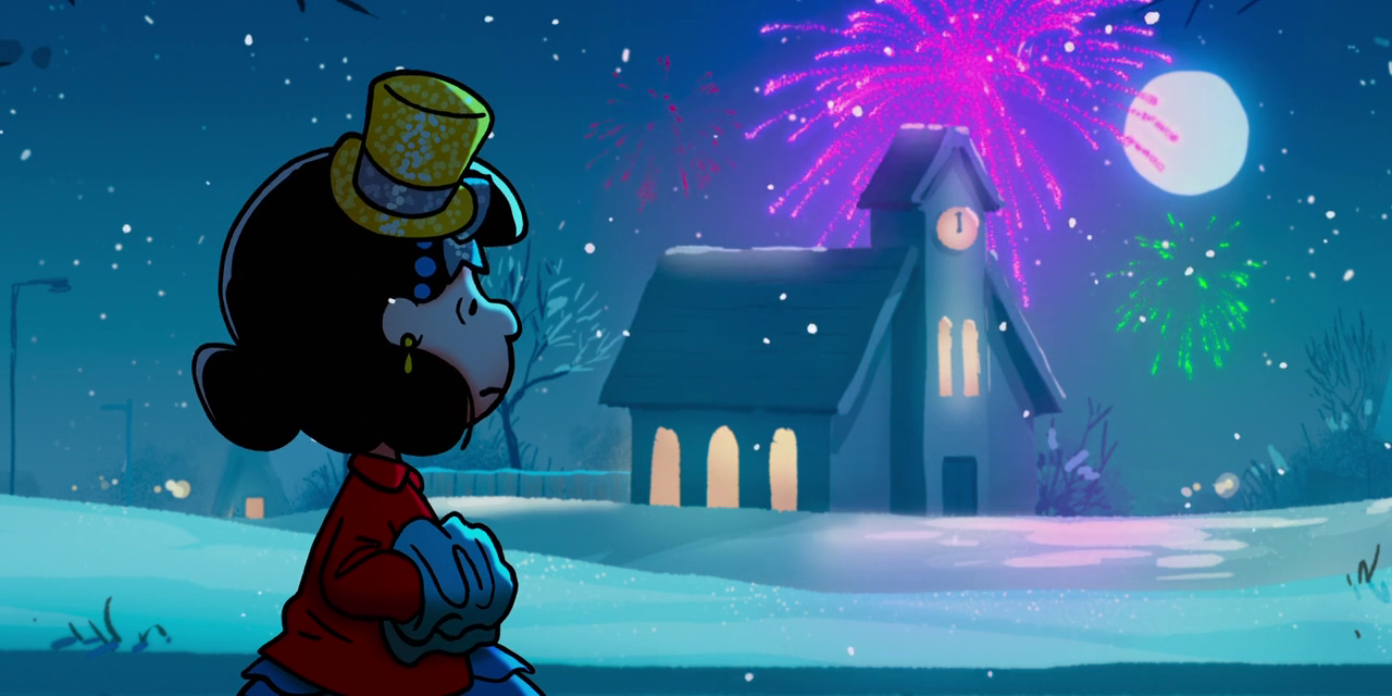 The first of these is the weakest of the batch that I’ve seen, though. The concept is sound: a winter special (much like the very first Peanuts short was A Charlie Brown Christmas) about both looking back and looking forward, set at a countdown to the new year. This special considers the transitional time through the words in “Auld Lang Syne,” a notion that I will always be a sucker for. (See: It’s a Wonderful Life, When Harry Met Sally, The Apartment, and my favorite podcast episode ever, an essay about the song written and narrated by John Green.)