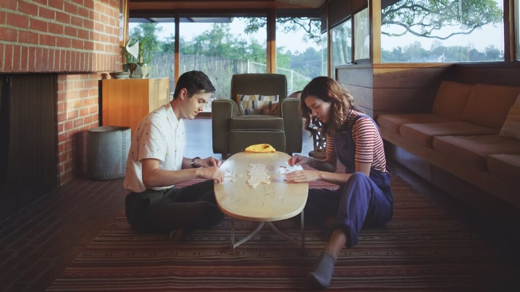 Sweeney’s direction is nearly as tightly controlled as his writing. Shot in the Academy 4:3 aspect ratio, the film boxes Todd and Rory into precise, symmetrical frames that echo their own sense of entrapment: in their sexuality, their adulthood, and in societal expectations for what a “proper” relationship should look like. Sweeney’s staging and blocking have a sensibility and precision reminiscent of obvious inspiration Wes Anderson, but Sweeney keeps the look just a smidge looser than Anderson; the spaces are bright and airy rather than Anderson’s painterly tastes. Sweeney uses a very cool split screen effect for a scene, showing parallel conflicts of Todd and Rory, a technique he’d deploy even more powerfully in Twinless.