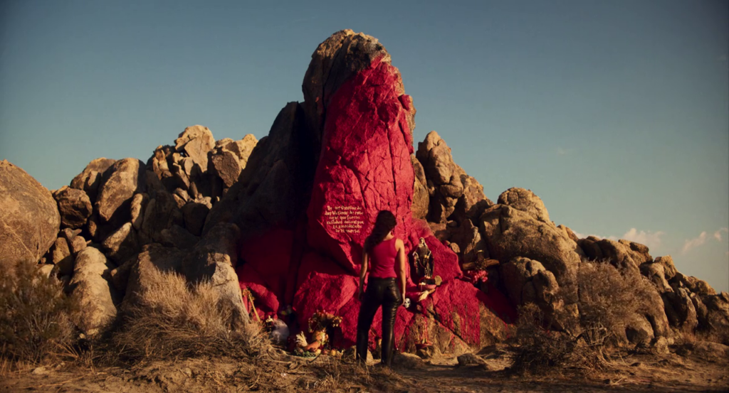 The final scene in the show finds Yaritza confronting a unit of Jesus’s men where they’re hanging out in a church, refitted as a bar where a group of trafficked women wait upon their pleasure. After messing with their heads for a few minutes, she shoots them all dead in a brief firefight that looks as easy and natural to her as breathing. She strides out the door into the glare of the desert sun, leaving the bodies where they lie, a cleansing fire poised to engulf the world. The camera shamelessly objectifies Cristina Rodlo as she goes, with her incredible printed bomber jacket/red-leather trouser combo; her bare midriff; her sashaying, catwalk-ready gait. A sexy beast, her hour come round at last, strutting towards Bethlehem to be born.