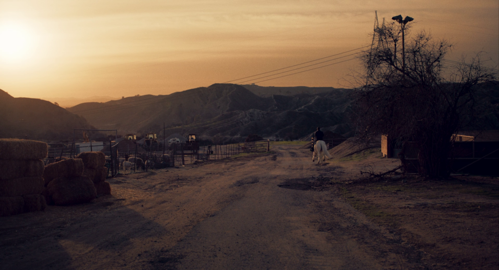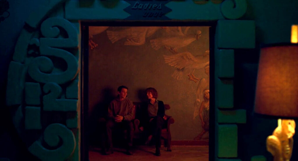 On more than one occasion, he’s described his approach to his subjects as “fetishistic.” I agree, with the provision that it’s not in the contemporary sense that the word “fetish” is used to mean “weird sex thing.” It can mean that, and sometimes does, but at its root, a “fetish” refers to an inanimate object treated as possessing some kind of indwelling spirit or potency. (Google’s dictionary suggests “talisman” or “totem” as potential synonyms.) To shoot something “fetishistically” is to treat it as having some kind of inherent, a priori significance. Why not linger for minutes at a time on the ornaments on the walls of an Albuquerque dive bar, or a character’s unnamed daughter practicing a figure-skating routine, or the eye/tree/skull print on the back of Yaritza’s bomber jacket? Why does there have to be a reason for these images, except that they call to the person composing them, the way that, say, a card calls to you when you draw it from a deck?